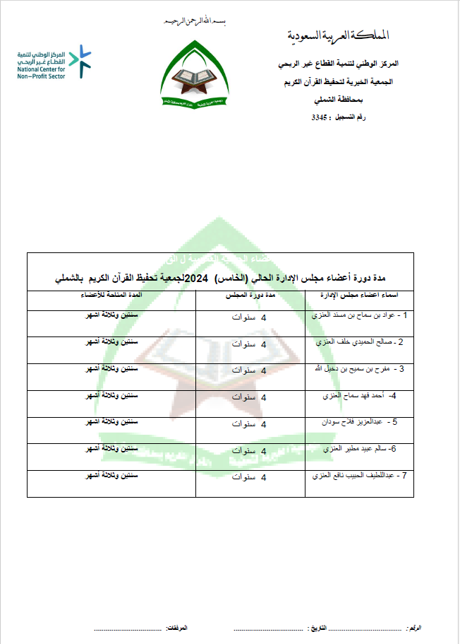 للفترة من 16-03-1444هـ إلى 15-03-1448هـ